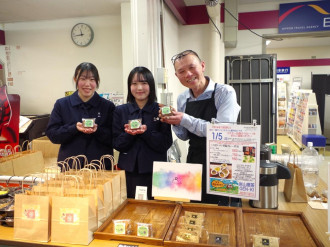 「喫茶GEN・KI」(盛岡市新庄)が1月5日、岩手県庁の売店で雫石黒千石を使ったシフォンケーキの販売会と、「黒千石大豆珈琲(コーヒー)」の売り場リニューアルのお披露目を行った。