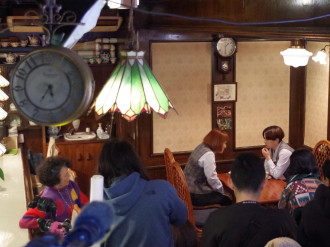 10日には市内の喫茶店「ティーハウス リーベ」で撮影。盛岡第一高校の同級生同士で岩手出身の女性コンビ芸人「忠犬立ハチ高」のノムラフッソさんと王坂さん、連続テレビ小説「あまちゃん」にも出演した盛岡出身の俳優・伊勢志摩さんが参加した。「忠犬立ハチ高」の2人はOL役、伊勢さんは喫茶店の店主役で、店内で3人が会話する場面などを撮影した。