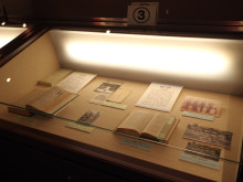その年の干支に関連した年賀状や出来事、人物などの資料を展示する年末年始恒例の同展。今回は47点の資料を5つのショーケースに並べる。