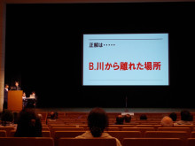 当日は各組が寸劇やクイズを交えながら、地域の歴史や過去に起きた水害、避難所の役割、防災に関わる設備、災害が起きた時に取るべき行動などについて発表。漫才風にハザードマップの見方を紹介したり、小道具を使って災害時の様子を再現したり、水害だけではなく地震や火災が発生した時の対応方法を取り上げたり、防災に関する用語を解説したりと、各組が工夫して学習成果を地域住民に伝えた。