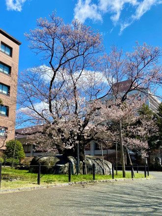 ソメイヨシノより一足先に開花宣言となった石割桜