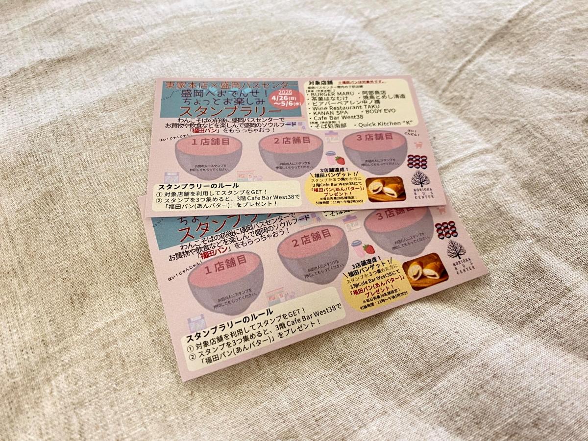 老舗そば店「東家本店」(盛岡市中ノ橋通1)と盛岡バスセンター(同)がコラボレーションしたスタンプラリーが4月26日、始まった。