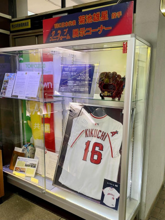 盛岡出身で、2026ワールド・ベースボール・クラシック(WBC)の日本代表に選出された、菊池雄星投手のユニホームととグラブが現在、盛岡市役所本庁舎1階(盛岡市内丸)で展示されている。