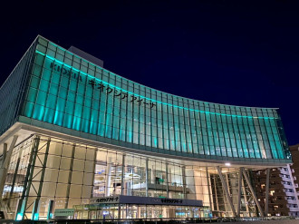 「キオクシア アイーナ(いわて県民情報交流センター)」(盛岡市盛岡駅西通1)で現在、「20周年ありがとうライトアップ -20th Anniversary Light Up-」が行われている。