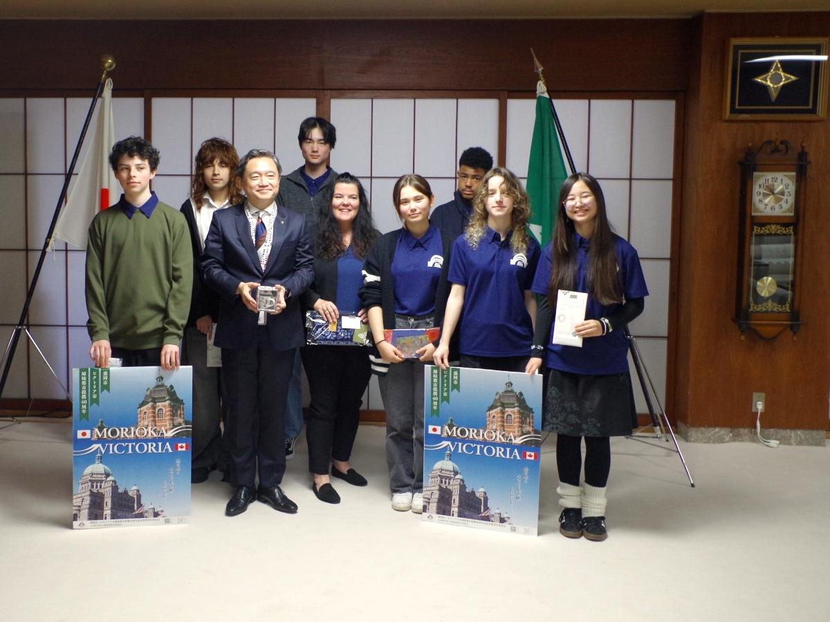 盛岡市の姉妹都市であるカナダ・ビクトリア市からの中高生訪問団が11月18日、内館茂市長を表敬訪問した。