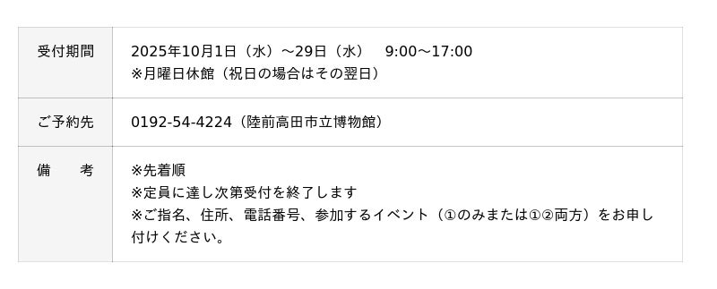 共 催:陸前高田市立博物館、(一社)陸前高田市観光物産協会