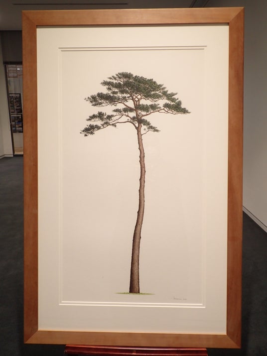2011年3月11日に発生した東日本大震災の大津波に奇跡的に耐えた一本松は、その姿から“奇跡の一本松”と呼ばれ「希望の象徴」となりました。その後海水のダメージで枯死してしまいましたが、復興の象徴である一本松の記憶を次代へ残すため、英国キュー王立植物園 公認植物画家の山中麻須美さんは2016年にこの木を描きました。