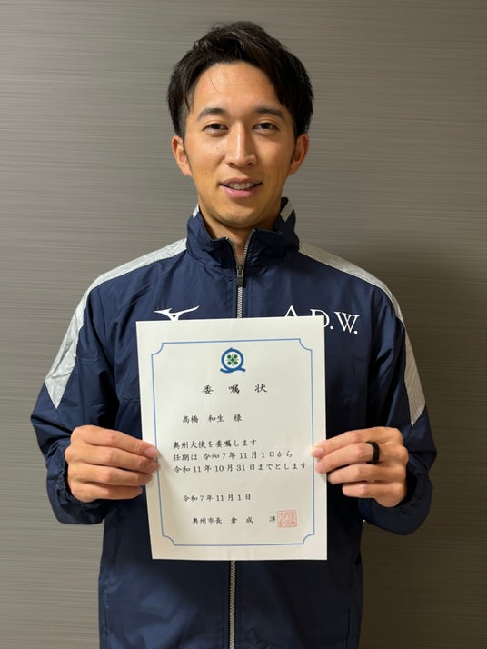 高橋選手は、競歩を始めた地でもある奥州市のスポーツ関連事業にも積極的に協力しており、これまでの大会成績による高い注目度や継続的な地域への貢献により、この度奥州市「奥州大使」に就任いたしました。