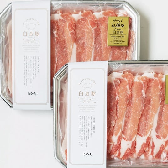 大切に育てられた「白金豚」の肉質はジューシーで、一口噛むごとに旨味が口いっぱいに広がります。「白金豚」は、一般的な養豚で用いられる品種に比べ、筋繊維がきめ細かく、しっとりとした食感が特徴です。脂身はほどよくのり、専用の飼料と工夫された飼育方法により、雑味のない上品な風味に仕上がっています。じっくり育てた「白金豚」ならではの、豊かな肉の味わいと旨みあふれる脂身を、ぜひご堪能ください。