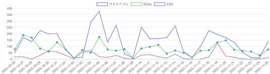 株式会社トドオナダ(代表取締役社長 松本泰行)は、2025年10月26日~11月25日までのSDGs・ESG・サステナビリティに関するウェブニュースについて調査・分析いたしました。4,000以上のWEBメディアをモニタリングできるPR効果測定サービス「Qlipper」( https://qlipper.jp/ )のデータに基づいた調査結果です。