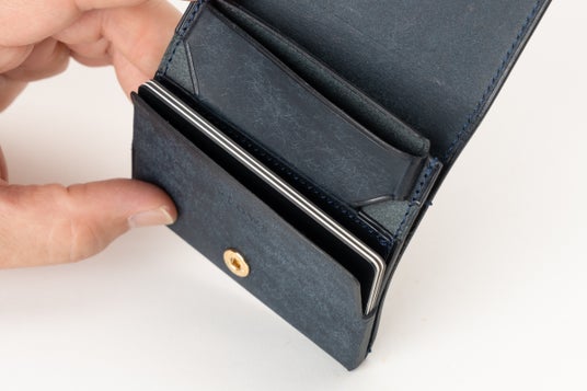 一般的な二つ折り財布ではほとんど見られない極小サイズを実現しながら、