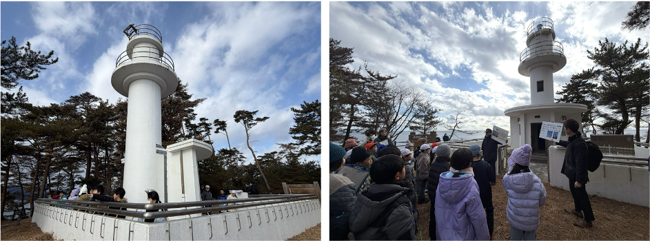 普段はなかなか見ることのできない灯台内部を見学し、設備についての説明を受けながら、灯台にまつわるクイズを交えて楽しく理解を深めました。児童たちからは積極的に質問も出され、灯台が果たしてきた重要な役割について学びを深める貴重な時間となりました。