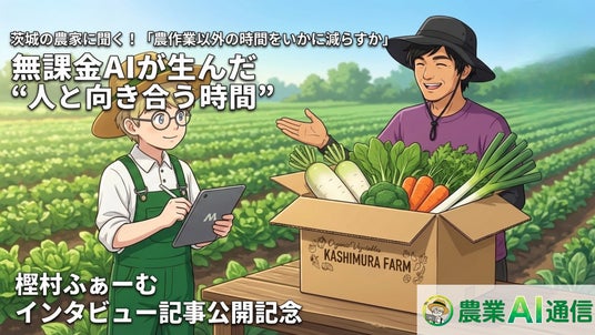 農業×新技術で持続可能な農業の実現に取り組むコミュニティ「Metagri研究所」(運営:株式会社農情人)は、茨城県の農家「樫村ふぁーむ」の生成AI活用に迫るインタビュー記事を、農家向けAIメディア「農業AI通信」にて2026年2月20日(金)より全3回にわたり公開します。記事公開を記念し、樫村ふぁーむの旬の野菜お任せBOXが当たるプレゼントキャンペーンも同時開催します。