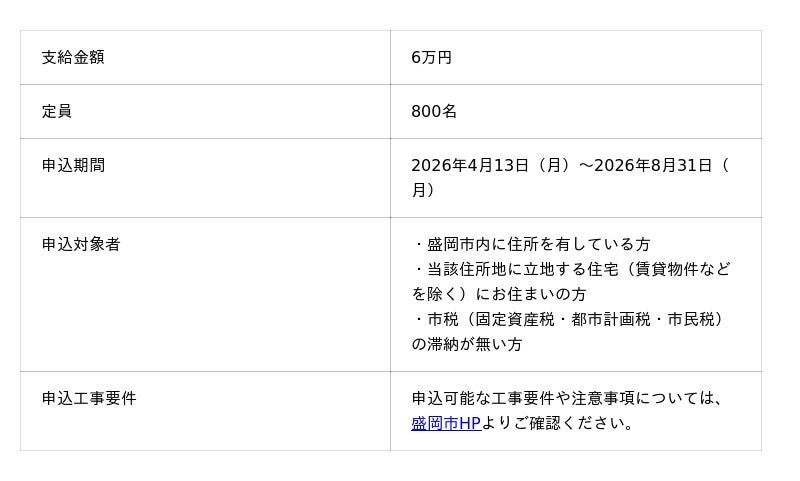 盛岡市 / 【物価高騰対応関連】リフォーム支援事業2026(MORIO Payプレミアム商品券発行事業)について