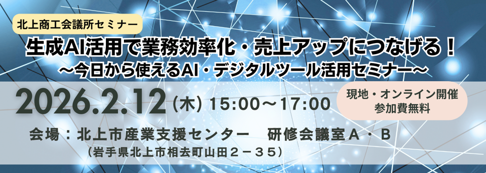 生成AI活用で業務効率化・売上アップにつなげる!~今日から使えるAI・デジタルツール活用セミナー~