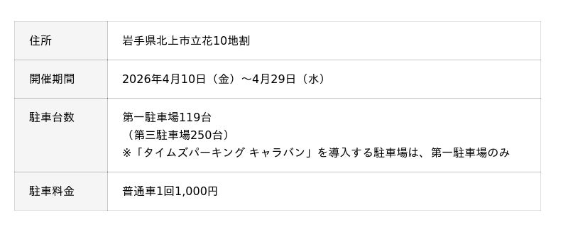 北上展勝地さくらまつり実行委員会とタイムズ24株式会社(本社:東京都品川区、社長:西川 光一、以下「タイムズ24」)は、2026年4月10日から29日まで岩手県北上市で開催される「北上展勝地さくらまつり」の駐車場運営において、移動式駐車場管理サービス「タイムズパーキング キャラバン」を初めて導入します。
