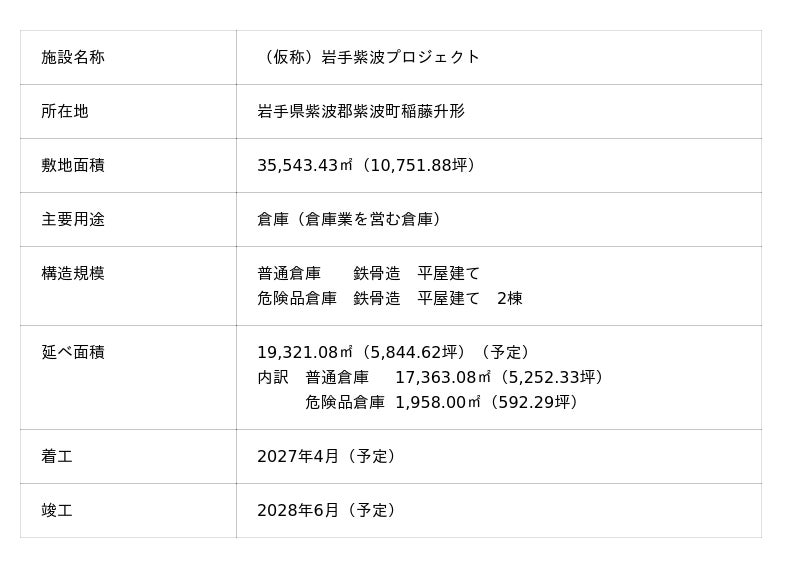 株式会社シーアールイー(代表取締役社長COO/亀山忠秀 本社/東京都港区)は、2026年4月10日、岩手県紫波郡紫波町において開発用地を確保し、物流施設「(仮称)岩手紫波プロジェクト」の開発に着手しましたのでお知らせいたします。現在、2027年4月の着工に向けて開発プロジェクトを始動しております。また、本件は、当社としては東北エリア※1における2件目の物流施設開発プロジェクトとなります。