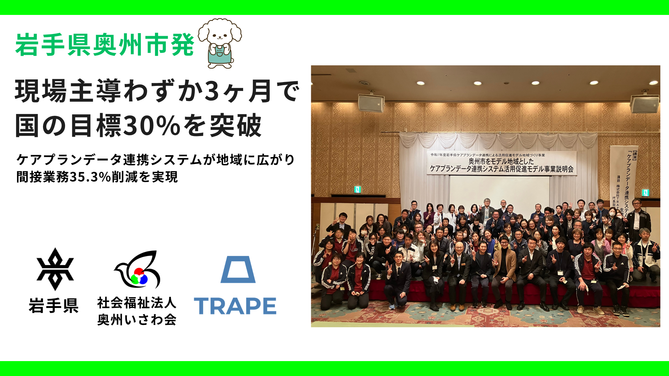このたび、岩手県令和7年度「ケアプランデータ連携による活用促進モデル地域づくり事業」において、社会福祉法人奥州いさわ会(同法人が岩手県より受託)と業務アドバイザー業務委託契約を締結しました。モデル地域である奥州市を中心に、岩手県内におけるケアプランデータ連携システムの導入促進と、各事業所における導入から運用定着までを一体的に支援する伴走型のモデル事業を実施しました。